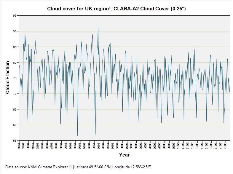 Today we humble Substackers are also going to look at clouds from both sides, those sides being the CRU TS4.08 cloud fraction 0.5° gridded assembly, and the CLARA-A2 cloud fraction 0.25° gridded assembly for the period January 1982 – June 2019 for the UK and inshore waters. We are talking state-of-the-art gear here, so there will be no excuse for weirdness.