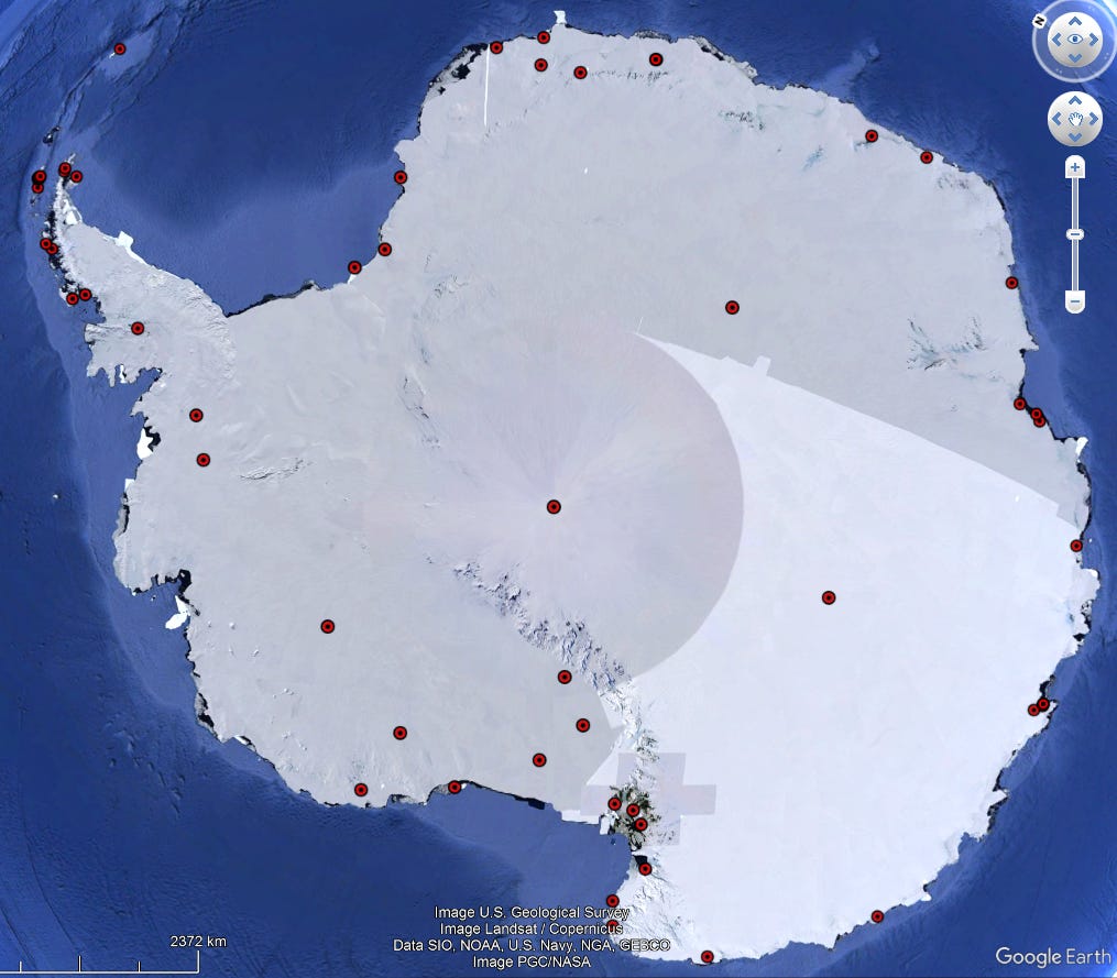 The mantra of the urban estate agent equally applies to the Antarctic, perhaps more so. Let me pull up a slice of Google and reveal where those 56 bases sit: