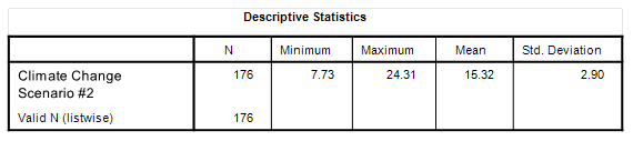 I’ve added a new table at the bottom that is the output from a linear regression that estimates the derived warming rate at 1.6°C per century (p=0.005), with the coefficient for this to be found under the column ‘b1’. This is what climate change as an inflation in variance should more or less look like when set against a backdrop of gradual warming, though with the inflation of variance over time a more gradual process rather than a step function starting in 1950.