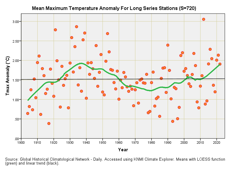 A little treat for paid-up subscribers in which I crunch mean and maximum daily temperature for all GHCNd stations with records stretching back >120 years