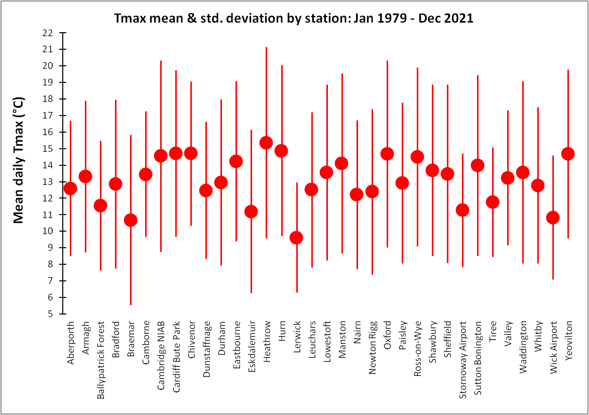 In sum, the mean daily maximum temperature a.k.a Tmax is a jolly decent sort that paints a truer picture than the Met-bod on the TV with the scary red and black heat maps.